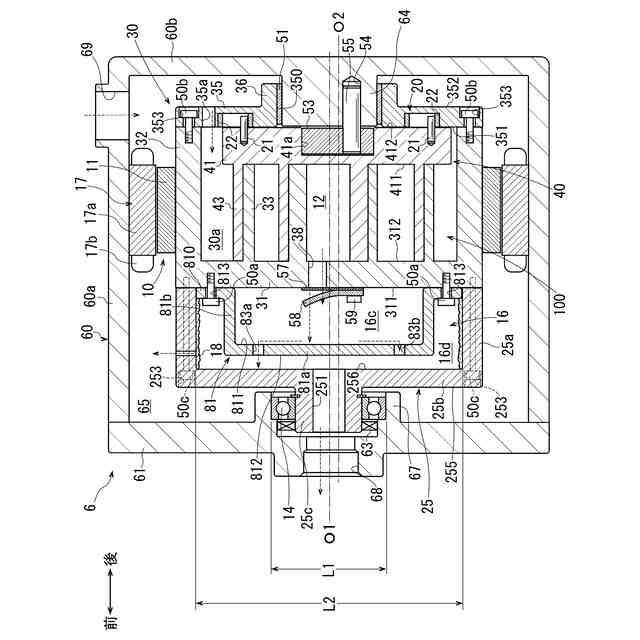 前記ケースは、軸受を介して前記ハウジングに回転可能に支持され、