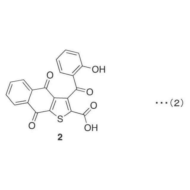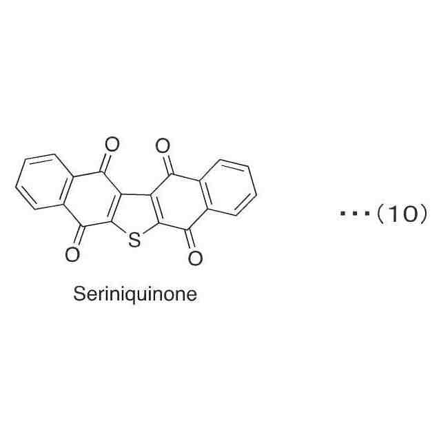 しかし、セリニキノンの溶解性は低く、創薬のためには様々なセリニキノン誘導体を創製する必要がある(非特許文献12-14)。このコンセプトの下、海洋微生物を用いた生物学的変換により、ジヒドロナフトチオフェン誘導体((2)式)がセリニキノンの誘導体として同定された(非特許文献15)。