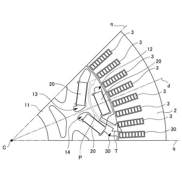 本願は上記課題の解決のため、ロータ構造の工夫により回転電機のトルクリプルの低減を目的としたものである。そして、ひいてはエネルギ効率の改善に寄与するものである。