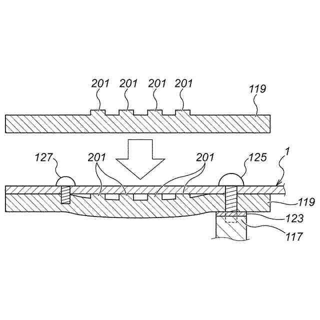 表面に素子と第1導電パターンを備え裏面に上記第1導電パターンと電気的に接続される第2導電パターンを備えた基板があり、