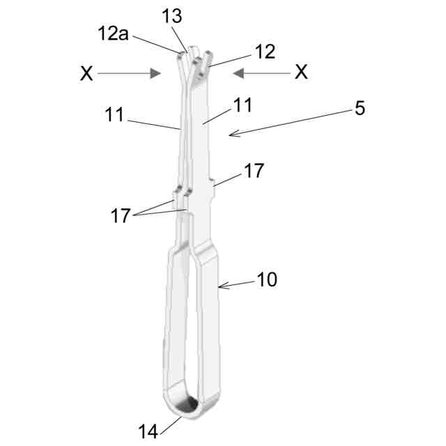 実施形態1で用いるコンタクトプローブ5であって、一対の弾性片部の間隔を狭めた状態における斜視図である。