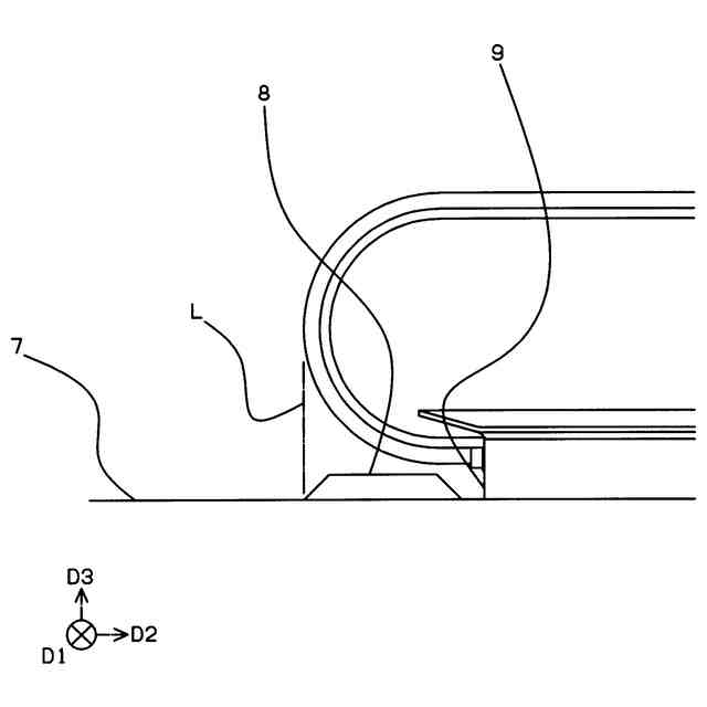 しかしながら、この場合、乗客の歩行の邪魔にはならないものの、阻止体がインレットスイッチの直前に設けられ、異物が手摺ベルトに引き込まれた後にインレットスイッチの直前で阻止体により異物が排除されるため、異物が引き込まれるのを防止するのに十分ではない。