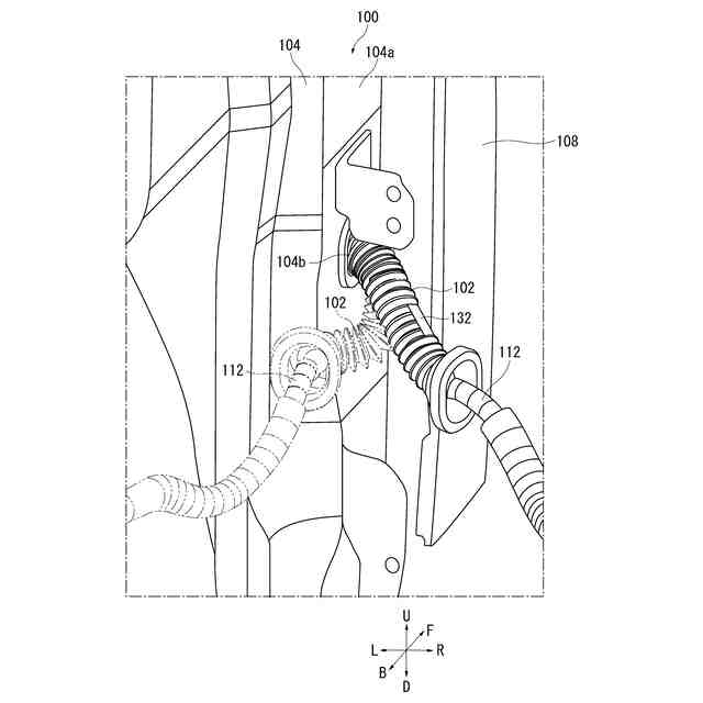 かかるハーネスは、通常、ゴムなどの弾性体であるグロメットによって筒状に覆われ保護されている。しかしサイドドアが開けられるとハーネスはサイドドアに引っ張られ、フェンダパネルに接近し、ハーネスを覆うグロメットがフェンダパネルに干渉してハーネスが断線するなどのおそれがある。