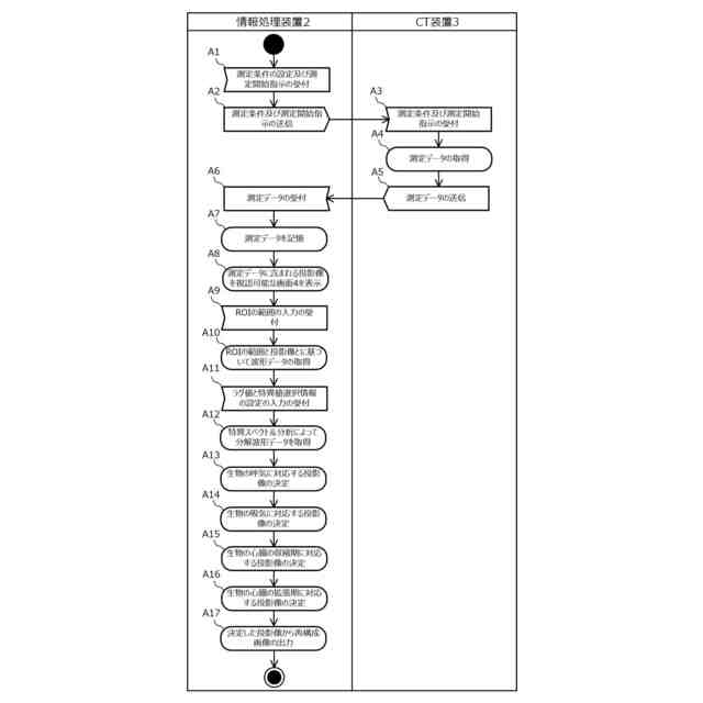 【解決手段】本発明の一態様によれば、CT装置により撮影された複数の投影像を処理するための情報処理システムが提供される。この情報処理システムは、特徴量取得部と、スペクトル分解部と、同期処理部とを備える。特徴量取得部は、波形データを取得し、波形データは、複数の投影像からそれぞれ得られる特徴量として示されるデータである。スペクトル分解部は、波形データに所定の分析手法を適用することによって、分解波形データを取得し、分解波形データは、波形データを分解することで得られる波形のデータである。同期処理部は、分解波形データが示す波形に基づいて、複数の投影像から、再構成に使用する投影像を決定する。