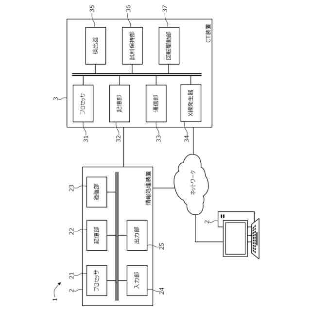 CT装置により撮影された複数の投影像を処理するための情報処理システムであって、