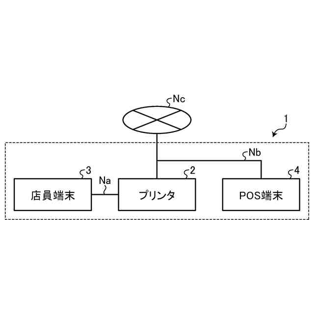 プリンタ2と店員端末3とPOS端末4とは、例えば、店舗等に設けられる。プリンタ2及び店員端末3は、例えば、店舗内の精算エリア等に設置される。