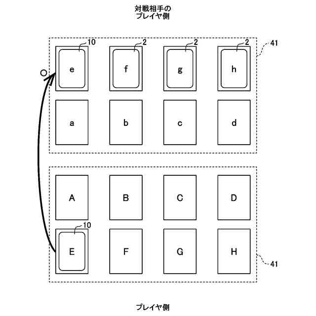 前記第1種類のゲーム物品は、前記対戦相手のプレイヤの第1エリアであって、前記プレイヤの第1エリアに近接している前記対戦相手のプレイヤの第1エリアに配置されている第1種類のゲーム物品のみを攻撃対象とできる第1種類のゲーム物品と、前記対戦相手のプレイヤの第1エリアであって、前記プレイヤの第1エリアに近接していない前記対戦相手のプレイヤの第1エリアに配置されている第1種類のゲーム物品を攻撃対象とできる第1種類のゲーム物品とを含んでいる、