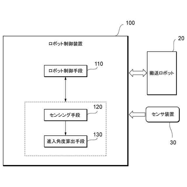 【解決手段】フラットパネル製造システム1は、ロボット制御手段110によって搬送ロボット20の保持部22を動作させて第1チャンバTCから第2チャンバPCに向かって進入させながら、センサ装置30によって当該第2チャンバPC内部の壁面までの距離をセンシングするセンシング手段120と、センシング手段120によってセンシングされることにより取得された少なくとも2つの距離に関する情報に基づいて、搬送ロボット20が第2チャンバPCに進入する進入角度を算出する進入角度算出手段130と、を備える。