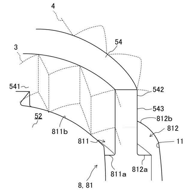 固定型のクリセントを備えた内接ギヤポンプは、比較的低い回転数で使用される。回転数を高くすると、内接ギヤポンプの吸込部においてキャビテーションが発生してしまうためである。キャビテーションの発生は、内接ギヤポンプの吸込部における作動油の圧力が、圧力損失によって低下することに起因する。固定型のクリセントを備えた内接ギヤポンプの最高回転数は、キャビテーションが発生する回転数未満に制限される。従来の内接ギヤポンプでは、キャビテーションが発生する回転数が比較的低かったため、内接ギヤポンプの最高回転数も低かった。