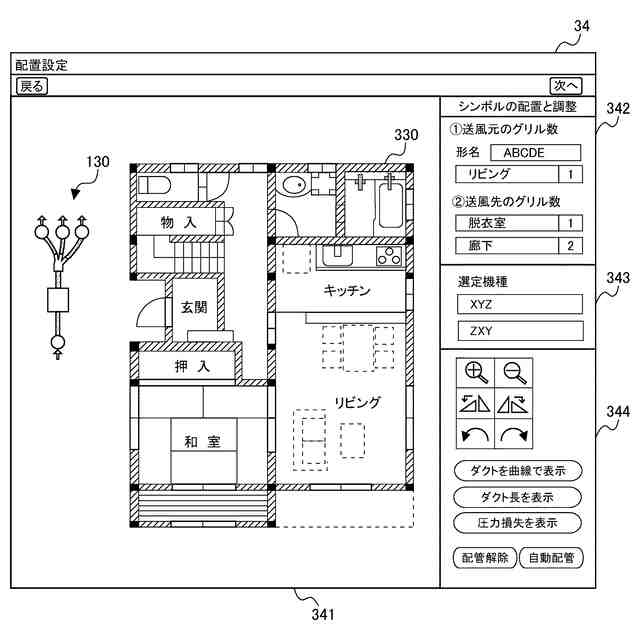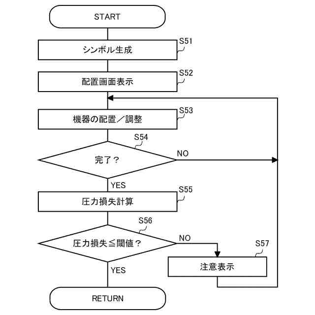前記配置画面における前記シンボルの配置に基づき前記空調システムの圧力損失を算出し、