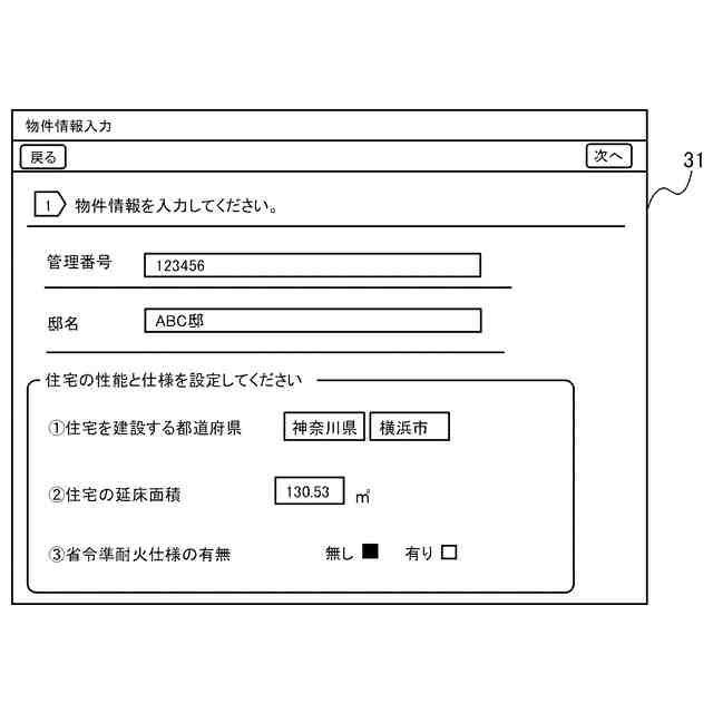 実施の形態1に係る表示装置に表示される物件情報入力画面の一例である。