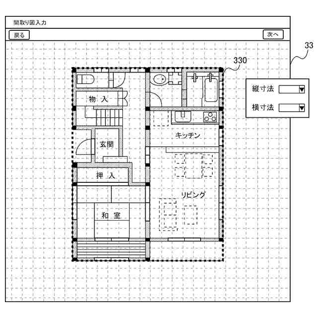 実施の形態1に係る表示装置に表示される間取り図設定画面の一例である。