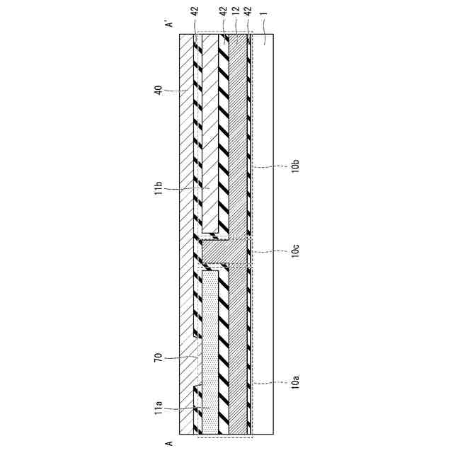 前記第1-1上部電極と前記第1-2上部電極との間の少なくとも一部に設けられ、前記第1-1上部電極と前記第1-2上部電極とを絶縁する絶縁膜と
