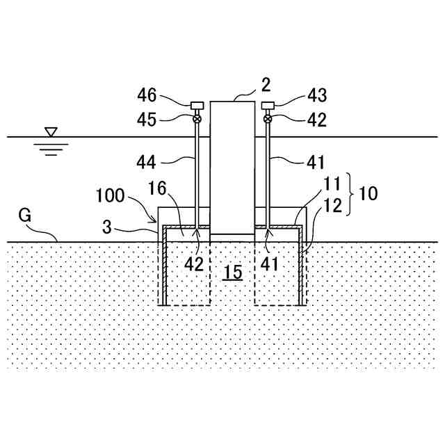 図1は、サクション基礎が設置された状態を模式的に示した説明図である。