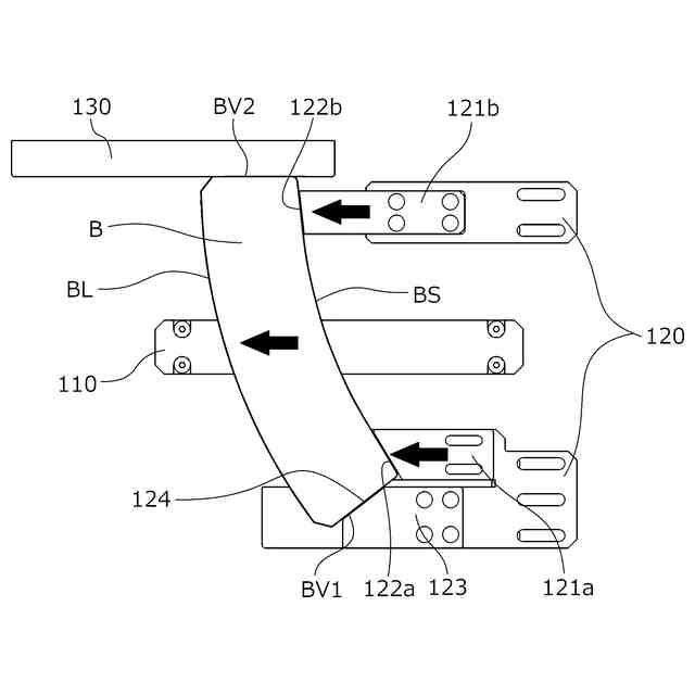 この特許文献1で公知のシート状部材搬送装置は、扇状のシート状部材(ブランク61)をストッカ(マガジンボックス14)内のブランク積重体6から1枚ずつ取り出し、下流の工程である胴貼り成形機構2へ送り出すものであり、ストッカ(マガジンボックス14)からシート状部材(ブランク61)を取り出す吸着パッド18と、ストッカ(マガジンボックス14)から取り出したシート状部材(ブランク61)を保持する保持部(案内部材522)と、保持部(案内部材522)上に載置されたシート状部材(ブランク61)を胴貼り成形機構2へ送り出すキッカー(突出片133)とを有している。
