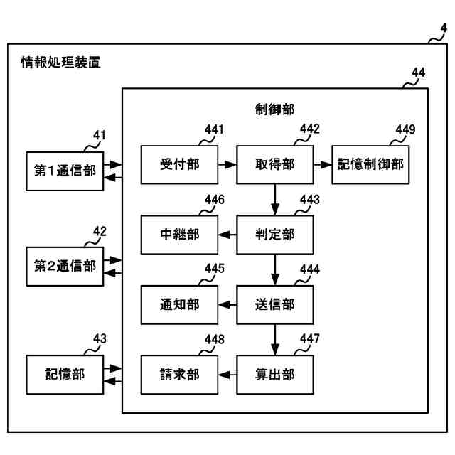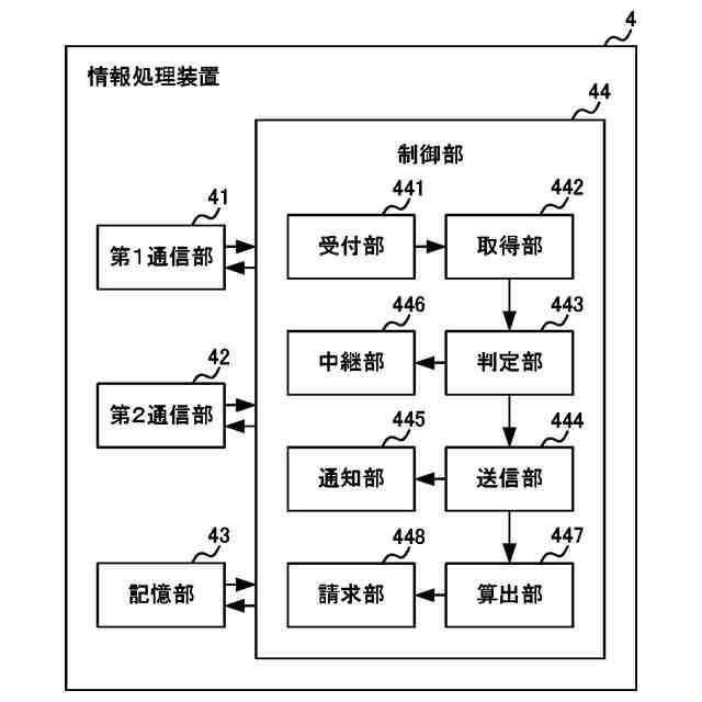 前記算出部は、取得した前記通信履歴情報が示す前記接続元端末と前記接続先端末との通信時間に基づいて、前記接続元端末と前記接続先端末とのそれぞれの、前記情報処理サービスの利用に係る料金を算出する、