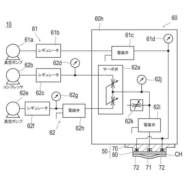 (2)前記正圧供給部は、正圧供給源から供給される正圧と負圧供給源から供給される負圧とを組み合わせて、前記ベース部材の前記第1空間に供給される正圧を少なくとも調整するサーボ弁を含む、上記(1)に記載の半導体接合装置。