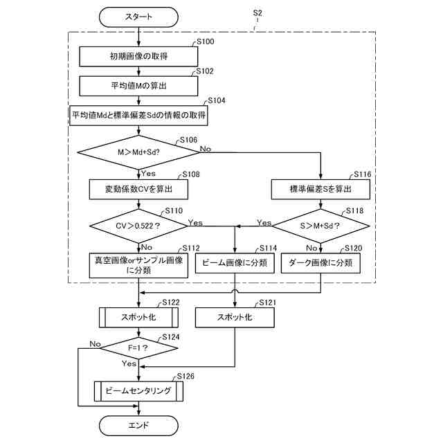 前記演算部は、前記第1画像がビーム画像であるか否かを判定する処理において、