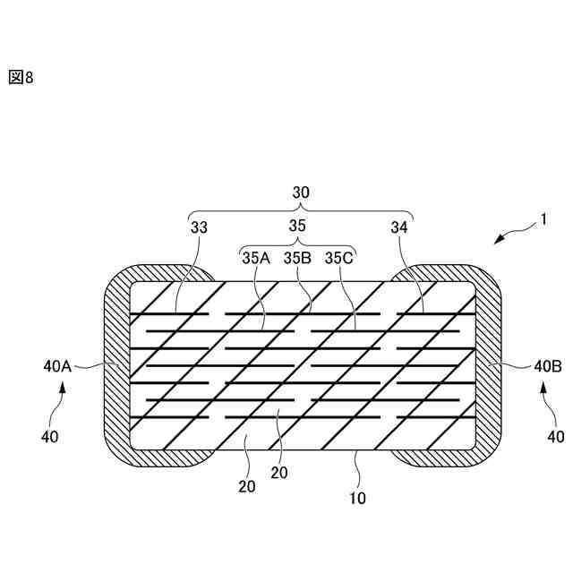 なお、図面は、発明の内容を説明するため、模式的に簡略化して描画している場合があり、描画された構成要素または構成要素間の寸法の比率が、明細書に記載されたそれらの寸法の比率と一致していない場合がある。また、明細書に記載されている構成要素が、図面において省略されている場合や、個数を省略して描画されている場合などがある。例えば、図2、図3に記述される内部電極層の数は、説明の便宜上、10層となっているが、これは、実際の内部電極層30の数を示すものではない。なお、本発明において用いる、形状や幾何学的条件、および、それらの程度を特定する用語、例えば、「平行」、「直交」、「同一」等の用語や長さや角度の値等については、厳密な意味に縛られることなく、同様の機能を期待し得る程度の範囲を含めて解釈することとする。