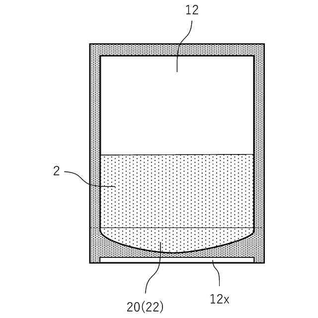 前記内側表面21bと前記内側表面22bとの間の下端部に、シールされていない領域20xを有する