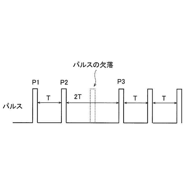 今回のパルスの周期が、前回のパルスの周期の1より大きい所定の倍率以上である場合、パルスが欠落していると判定し、前回のパルスの周期に基づいて、前記被検出物の速度を算出し、