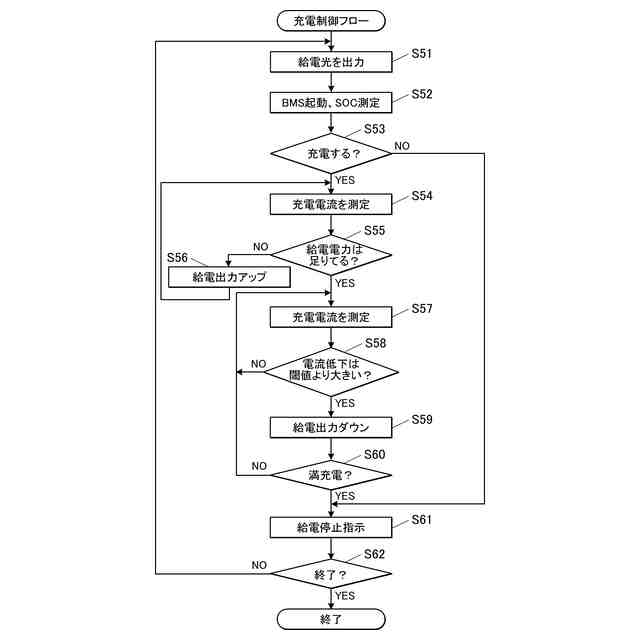 前記制御する機能は、前記給電装置に配置され、前記バッテリ制御部により前記バッテリの充電を実行させる、