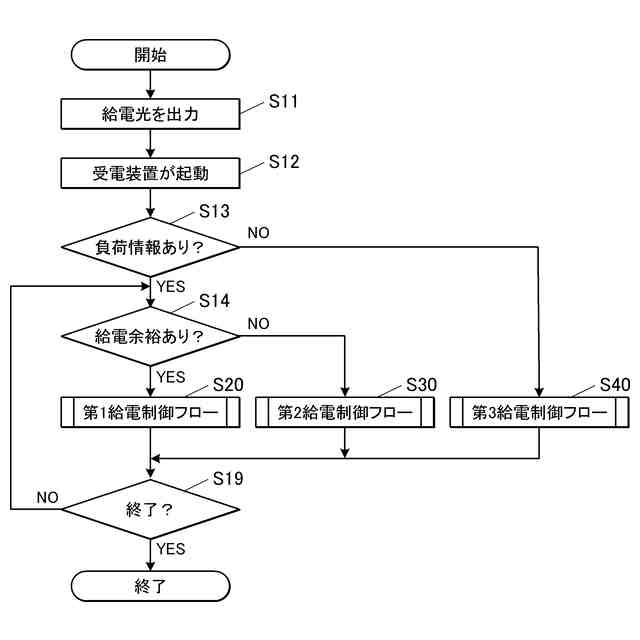 前記給電装置が前記受電装置から前記負荷情報を受信すると、前記負荷情報に基づいて、前記給電装置から前記受電装置に出力する給電光の出力を制御する機能と、