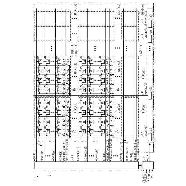 【解決手段】複数の第1発光素子と、複数の第2発光素子と、第1データ転送線と、前記第1データ転送線と接続される第2データ転送線と、第1データ線と、第2データ線と、前記第1データ線と接続される複数の第1画素回路と、前記第2データ線と接続される複数の第2画素回路と、前記第1データ線と前記第2データ転送線との電気的接続を制御する第1スイッチ回路と、前記第2データ線と前記第2データ転送線との電気的接続を制御する第2スイッチ回路と、を有し、前記第1データ線は、前記第2データ転送線から前記第1スイッチ回路を介して前記複数の前記第1発光素子の各々を発光させるための信号が供給され、前記第2データ線は、前記第2データ転送線から前記第2スイッチ回路を介して前記複数の前記第2発光素子の各々を発光させるための信号が供給される、表示装置。