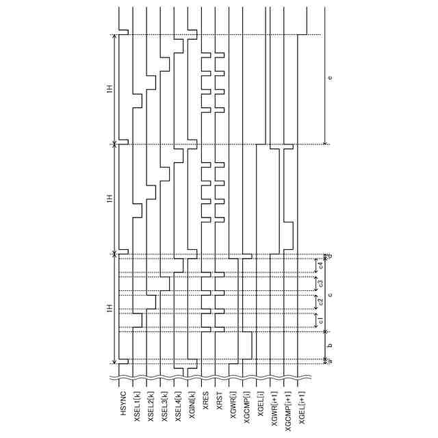 表示装置における各種信号の波形の一例を示すタイミングチャート図。