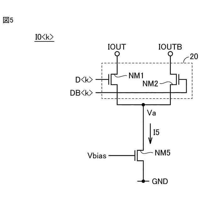 【解決手段】複数のデジタル入力信号の入力をアナログ出力信号に変換する電流切替型DAC101は、複数のデジタル入力信号D<1>~D<n>、DB<1>~DB<n>にそれぞれ対応して設けられ、各々が、対応するデジタル入力信号に応じて所定の電流を供給することが可能な複数のユニット電流源I1<1>~I1<n>、複数のユニット電流源とそれぞれ接続され、各ユニット電流源の所定の電流値の合計を出力する一対の出力端子IOUT、IOUTB及び複数のユニット電流源のそれぞれに対して供給するバイアス電圧Vbiasを出力するバイアス電圧供給部10を備える。各ユニット電流源は、出力端子の電流経路を切り替えるための差動スイッチ、バイアス電圧の供給を制御するバイアス電圧制御回路及びバイアス電圧制御回路の制御信号を生成するバイアス制御信号生成回路を含む。