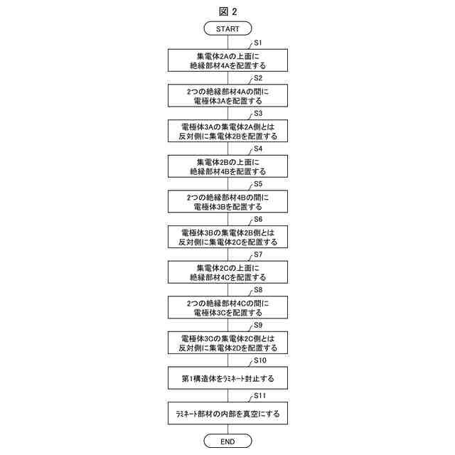 特許文献1に記載の技術のように電極体の周囲に絶縁部材が設けられる場合では、真空封止後に隣接する電極体と集電体とを接触させるためには、絶縁部材の厚さを電極体の厚さ以下にする必要がある。しかしながら、真空封止前に絶縁部材の厚さを薄くした場合、電極体の平坦度が低いと絶縁部材の間に電極体を位置させる際に電極体が絶縁部材に乗り上げ積層不良を起こす虞がある。