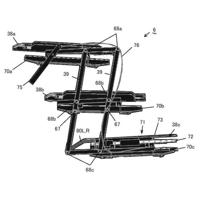 請求項4記載の発明は、リンク部材74の一端側を載置部材73の中途部に回動軸74aにて連結し、リンク部材74の他端側を予備苗載台38の基台72に沿って移動自在に設け、リンク部材74の一端側を回動軸74aより突出させて載置部材73が苗箱Nを載置する載置状態の際には載置部材73上面よりも下方に位置し、載置部材73が枢支軸73aにて回動して空箱レール70に向いて傾斜した傾斜状態の際には載置部材73上面よりも上方に突出して載置した苗箱Nを押し上げる箱押し上げ部73dを構成した請求項2または請求項3に記載の乗用型苗移植機である。
