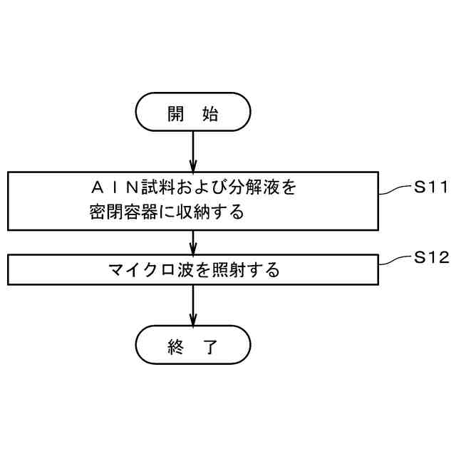 一方、特許文献1では、AlNを主成分とする試料と、塩酸を含有する溶液との混合物をテフロン(登録商標)製の内容器に収納し、当該内容器を密閉容器に収容した後、当該混合物を250W、400W、500Wの出力の順に各5分間、マイクロ波加熱することにより、AlNを主成分とする試料を分解する方法が提案されている。