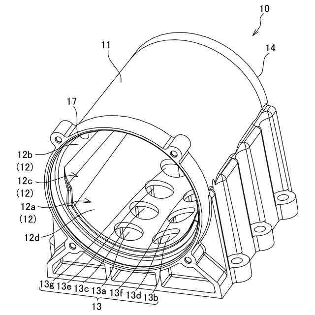 前記第2内壁部は、前記第1内壁部よりも前記中心軸からの半径が大きい部分を有して軸方向若しくは径方向にて前記中心軸からの半径が変化する拡径部を有する、