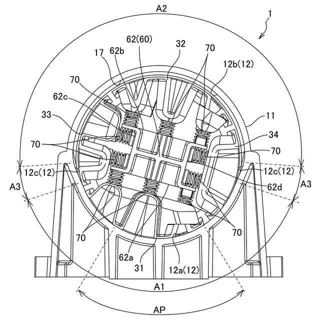 前記第2内面領域が設けられる範囲は、前記軸方向視で180°以上である