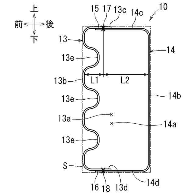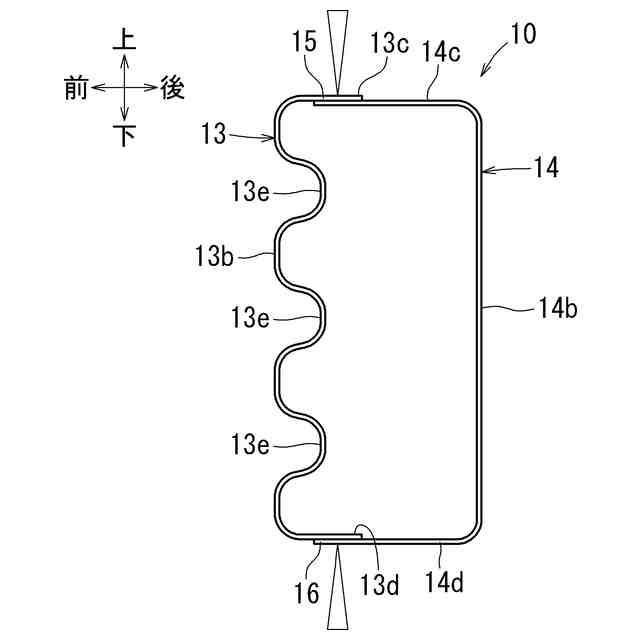 前記第1部材の他方の前記壁部の外面と前記第2部材の他方の前記壁部の内面とが当接した状態で重なった第2の重ね合わせ部と、
