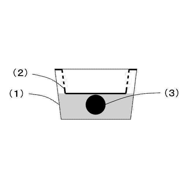 浮遊する食材を調理液内に物理的に沈降させる方法としては、マイクロ波透過性の外鍋とマイクロ波不透過性の内鍋を用いる方法が開示されている(特許文献1)。特許文献1に記載の方法は食材を液中に沈降させた状態で加熱調理ができるため、食材に均一に火が通りやすく、電子レンジ調理の質を高めることができるが、特許文献1には乾燥食材の湯戻しに関する記載はなく、とりわけ大型の乾燥食材をマイクロ波で隈なく湯戻し可能な即席食品の設計に関する記載はない。即席食品において、乾燥食材をムラなく湯戻しする方法としては、ヒートシール性の液体透過性不織布を用いた即席食品用包装材を用いる方法が開示されている(特許文献2)。特許文献2に記載の方法は液体透過性不織布の上から湯を注ぐことができるため、吸水した液体透過性不織布が乾燥食材表面を覆いながら湯戻しすることができ、乾燥食材の表面全体に水分子を接触させて浸透させることができるが、特許文献2においてはマイクロ波との併用には着想しておらず、調理後の食材の食感に課題が残されていた。浮遊する食材に起因する課題を解決する方法としては、注水の目安線の直下に3~10mm幅の色帯を付する方法が開示されている(特許文献3)。特許文献3に記載の方法においては浮遊する食材により見えにくい注水の目安が明確化するものの、特許文献3には浮遊する食材を沈降させる手段についての記載はなく、湯戻り性や調理後の食感には課題が残されていた。