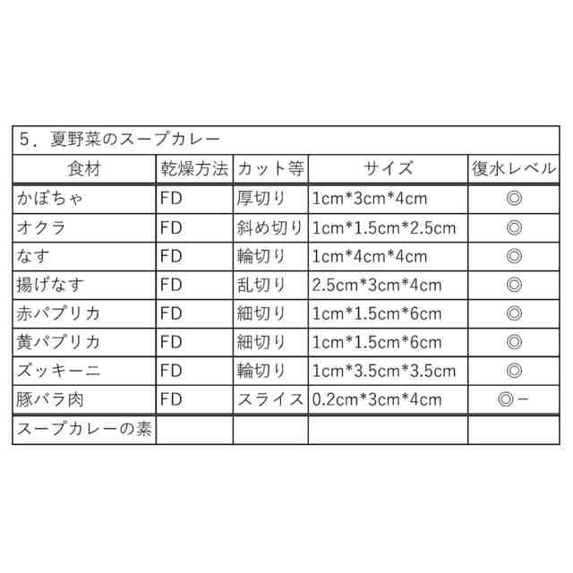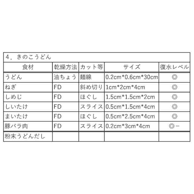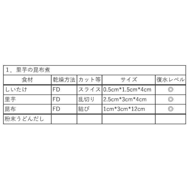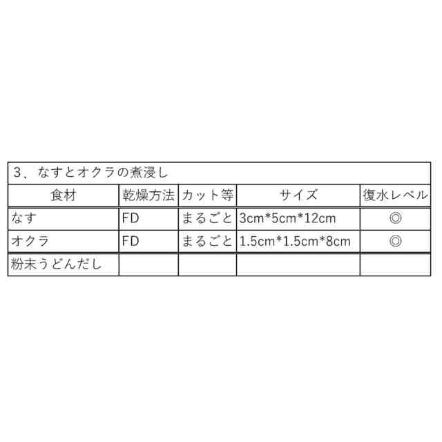 乾燥食材を用いた即席食品としては様々なものが存在し、カップラーメンをはじめ、フリーズドライの味噌汁や、フリーズドライの具が入ったカップスープ等が市場に多く見られる。これらは軽くて日持ちがする上、熱湯を注いで3分~5分程度の短時間で調理が可能であることから、時間のない日の食事や、間食、夜食等に重宝されており、家庭や職場にストックされているケースも多い。一方で、あくまでも簡便食や非常食というイメージが強く、生の食材を鍋で長時間煮込んだ料理とは様々な点で大きく異なる。とりわけその違いが顕著に見られるのが、食材のサイズと食感である。例えば、フリーズドライの味噌汁に入っているにんじんは、一辺が1cmにも満たない非常に小さいサイズにカットされていて、食べ応えが十分とは言えない。また、同じくフリーズドライの味噌汁に入っているなすは、スポンジのような空洞のあるフカフカとした食感で、生のなすを長時間煮込んだトロトロの食感からは程遠い。フライ製法で製造されたカップ麺のうどんも、スポンジのようなフカフカとした食感で、生のうどんを鍋で茹でたツルツルでもちもちとした食感とは大きく異なる。