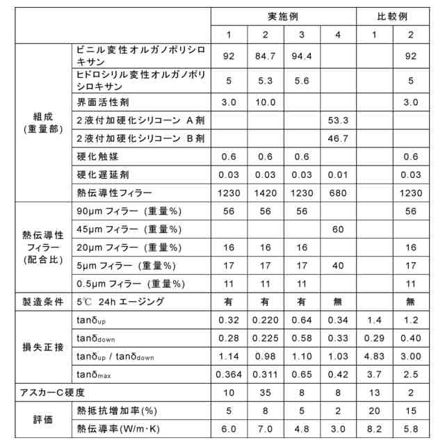 【解決手段】熱硬化性樹脂、及び熱伝導性フィラーを含み、-20℃から150℃まで昇温速度5℃/分で昇温後、150℃から-20℃まで降温速度-5℃/分で降温するサイクルを3回繰り返したときに、3サイクル目の昇温過程における25℃の損失正接tanδ