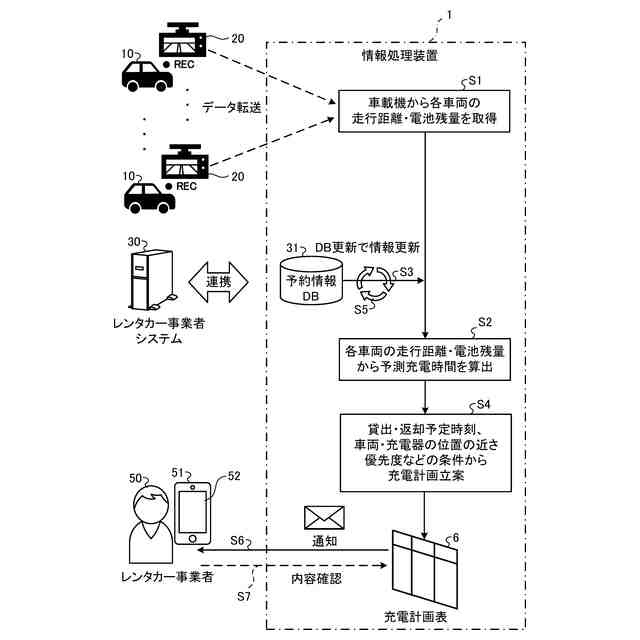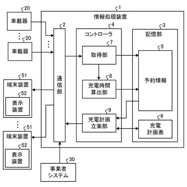 以下、添付図面を参照して、情報処理装置、表示装置、および情報処理プログラムの実施形態を詳細に説明する。なお、以下に示す実施形態によりこの発明が限定されるものではない。実施形態に係る情報処理装置は、電動車両を顧客に貸し出すレンタカー事業者(以下、単に「事業者」と記載する場合がある)に対して、複数の電動車両を効率的に充電できるような充電計画を立案して提供する情報処理装置である。
