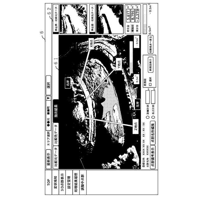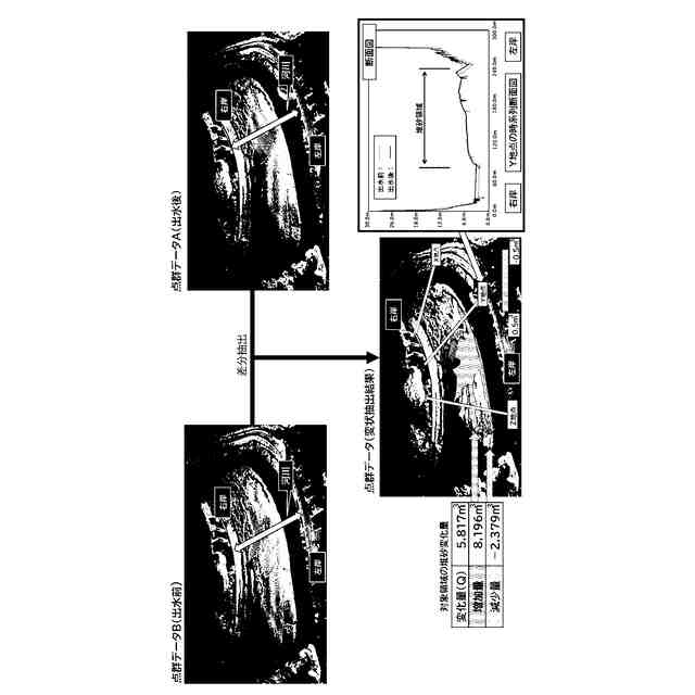 従来の技術では、カメラやレーザスキャナ等の複数の計測手段が取得する測定データに基づいて、対象地域における地表面形状の変化量を算出する。そして算出した地表面形状と事前に設定しておいた危険度とを比較して当該対象地域における危険度を予測することが可能である。その結果、地表面形状の変化量に基づいて、土砂災害発生の予測および検知を実施することが出来る。しかし、地表面の変化量から対象地域の土砂災害の危険度を予測および検知することは出来ても、対象地域における体積の変化量を考慮することは出来なかった。そのため、例えば、対象物のうち体積が少なく地形が削れやすい箇所を検出することや、地形を整える掘削作業や災害現場の復旧作業時などに搬出される土砂量などを推定することが困難であった。