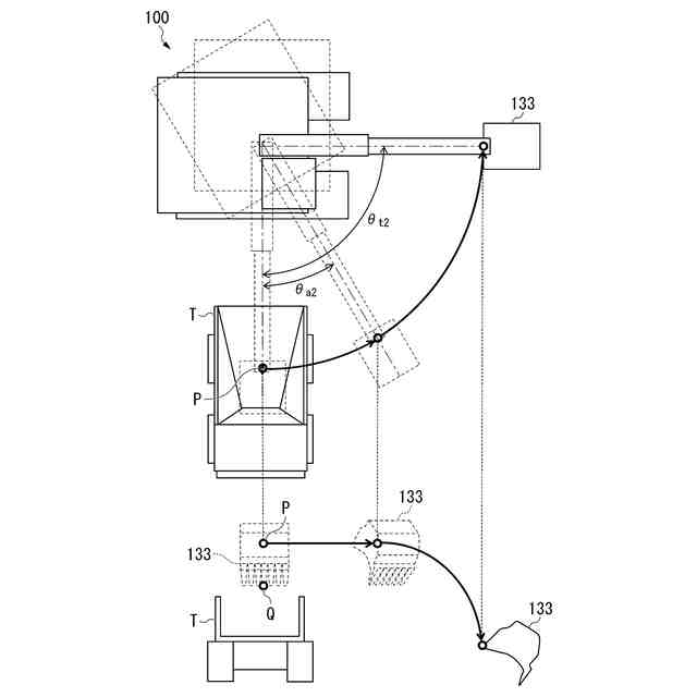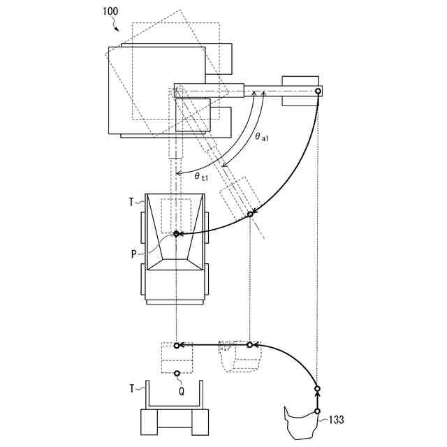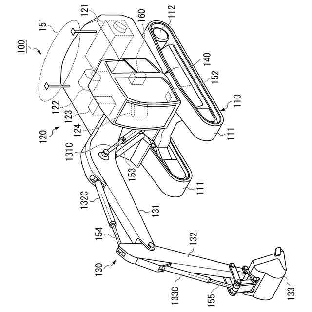 作業機械100は、施工現場にて稼働し、土砂などを掘削し、荷としてダンプトラックなどの積込対象Tのベッセルなど荷台に積み込む。作業機械100の例としては、フェイスショベル、バックホウショベル、ロープショベルなどが挙げられる。また作業機械100は電動駆動するものであってもよいし、油圧駆動するものであってもよい。第一実施形態に係る作業機械100は、バックホウショベルである。作業機械100は、走行体110、旋回体120、作業機130及び運転室140を備える。積込対象Tの例としては、ダンプトラック、ホッパなどが挙げられる。