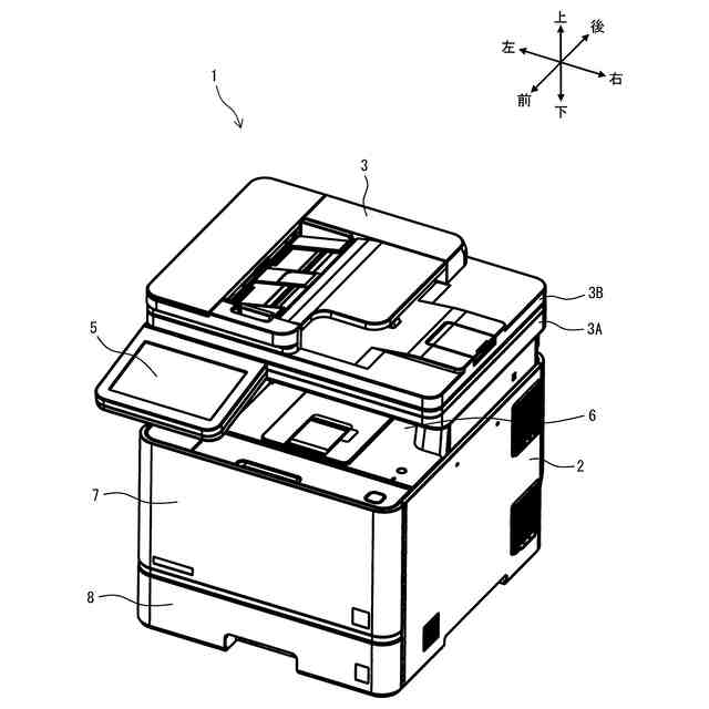 実施形態に係る複合機の自動原稿搬送部が閉じた状態の外観構成の一例を表す斜視図である。