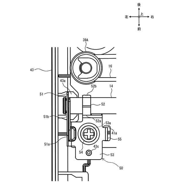本願発明においては、板金部材が、規制部と当接部とを有する。規制部がガイドシャフトの上方への移動を規制する一方、当接部がガイドシャフトを径方向外側から挟んで当接し、接地を行う。