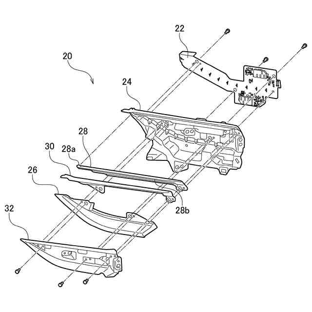 特許文献1に記載の車両用灯具では、導光体は車両の形状に倣って車両内側から外側にかけて後方に傾斜配置されている。このような傾斜配置された導光体に対して光を入射するために、ランプボディを階段状に形成し、各段にLEDを搭載する基板を配置している。しかしながら、この場合、LEDを搭載する基板を分割して形成することとなるため、コストが高くなる可能性がある。