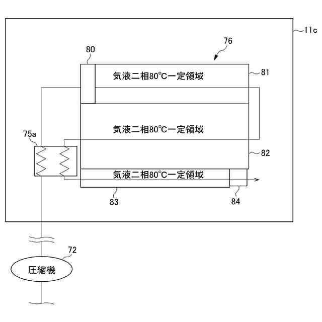 2種類の熱媒体を用いた場合、熱交換で生じるロスもそれだけ多くなる。LLC等の熱媒体を利用せずにフロンガス等の熱媒体により直接的に吸着材の加熱や冷却を行うことが考えられる。しかしながら、ヒートポンプのフロンガス等の熱媒体は、圧縮によって過熱状態まで昇温されるため、そのままリアクターに供給すると必要以上に高温となり、吸着材の劣化を招くおそれがある。