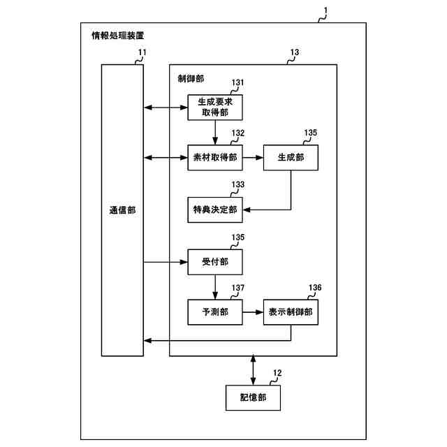 【解決手段】ユーザが所定のサービスに投稿した情報を素材として構成されるコンテンツを生成する要求である生成要求を取得する生成要求取得部131と、素材を投稿したユーザを識別するためのユーザ識別情報と関連付けた素材情報を記憶する記憶部12と、生成要求に応じて生成するコンテンツに適用する素材を取得する素材取得部132と、生成要求に対応するコンテンツが生成された場合に、コンテンツに適用された素材を投稿したユーザに付与する特典を決定する特典決定部133と、を有する情報処理装置1である。