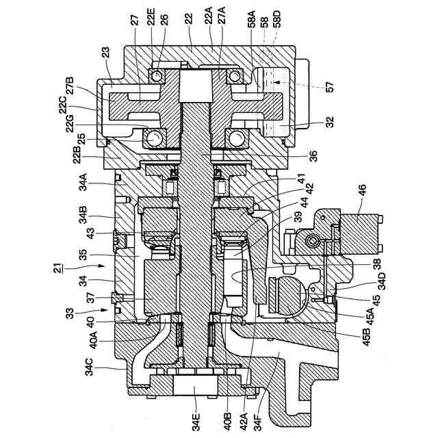 前記ギヤケーシングに設けられ、前記歯車と一緒に回転されることにより油圧アクチュエータに向けて作動油を供給する複数の油圧ポンプと、