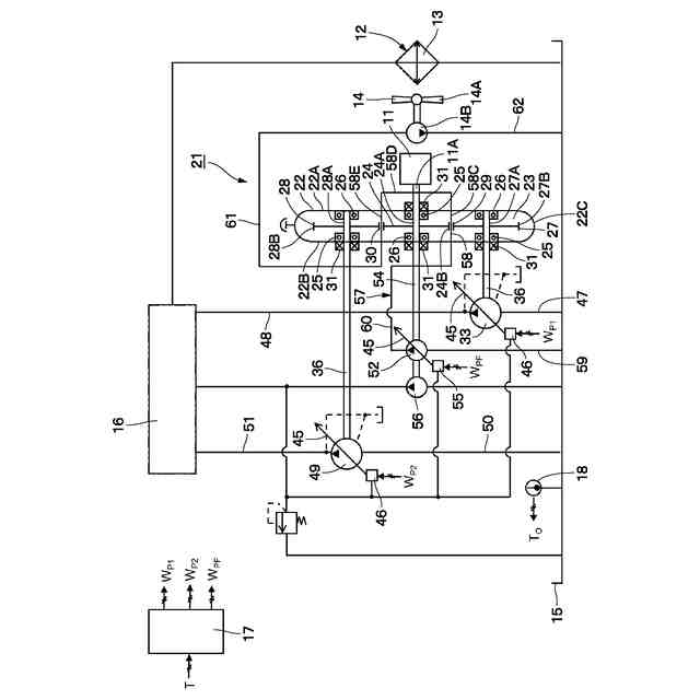 【解決手段】 ギヤケーシング22のギヤ室23には、内部通路58の少なくとも一部が潤滑油32に浸漬した状態で油管路57が設けられている。この油管路57には、ファンポンプ52から吐出された作動油(圧油)が導かれるように構成されている。従って、オイルクーラ13で冷却された作動油を利用することで、冷却ファン14による冷却風に頼ることなく、ギヤ室23の潤滑油32の温度上昇を抑制することができる。