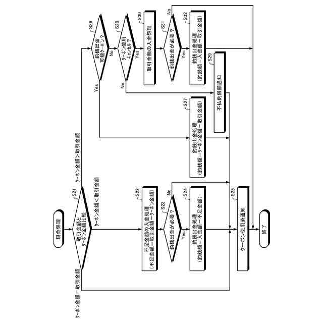 クーポンの使用を続ける選択がされた場合は、前記現金処理部で現金処理を実行することなく、前記通信部を介して、実行命令を受けた前記取引金額分の現金を受け取る前記現金処理の完了を通知して、